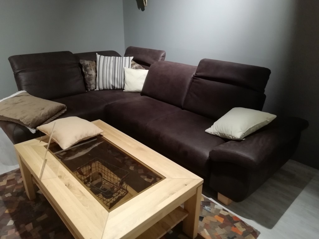 1x Polstergarnitur Modell: Bavaria Bezug: Büffel Microfaser Farbe mocca, Blocksitz, Sitzhöhe 46 cm, Fuß: Eiche