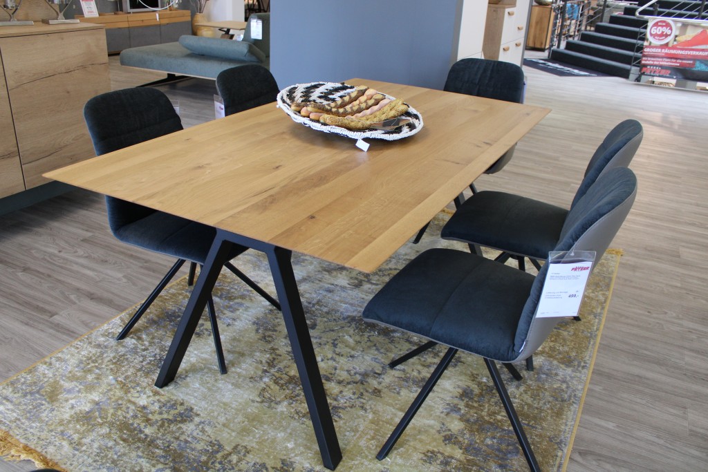 1x Tisch 180x200 cm in Eiche Astig geölt, Gestell: Verkehrsschwarz