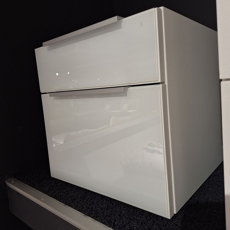 1x Nolte Nachttisch Norbi Modell: Alegro 2 Basic mit 2 Schubkästen, Front: Weißglas, Korpus: Polarweiß B/H/T: 40 / 41 / 46 cmEventuelle Gebrauchsspuren sind im Abholpreis bereits berücksichtigt.