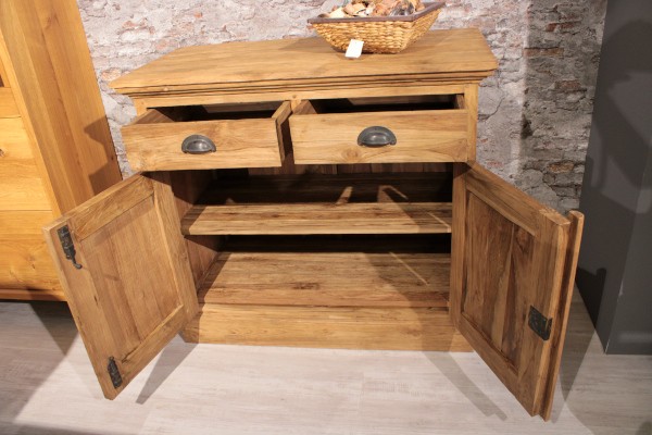 1x Peter Sideboard Teak recycelt H/B/T 100 x 90 x 50 cm mit 2 Türen und 2 SchubladenDekorationsartikel sind im Preis nicht inbegriffen.Eventuelle Gebrauchsspuren sind im Abholpreis bereits berücksichtigt.