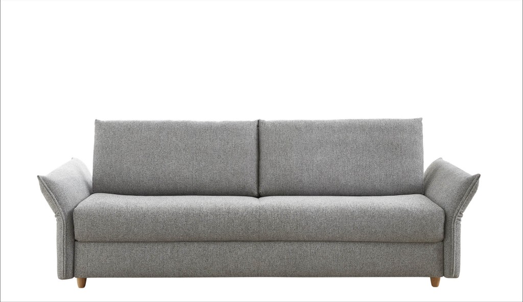 Stoff 8-2505, Farbe grün, Schaummatratze, 2-geteiltes Lattenrost, Seitenblende 1, Holzfuß Nr. 54 Buche natur, Sitzhöhe 46cm , Sitztiefe ca. 55cm 1727 - Schlafsofa 180 cm, Liegefläche ca. 180x200cm, BHT ca. 213/91/101cm