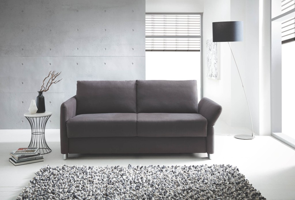 Stoff Nr. 8-7105, Farbe hellgrau, Kaltschaumpolsterung, Armlehne 1, Massivholzfuß Buche silberfarbig (326) 2346 - Schlafsofa, Ergoflex Lattenrost, Gelformmatratze, Liegefläche ca. 140x200cm